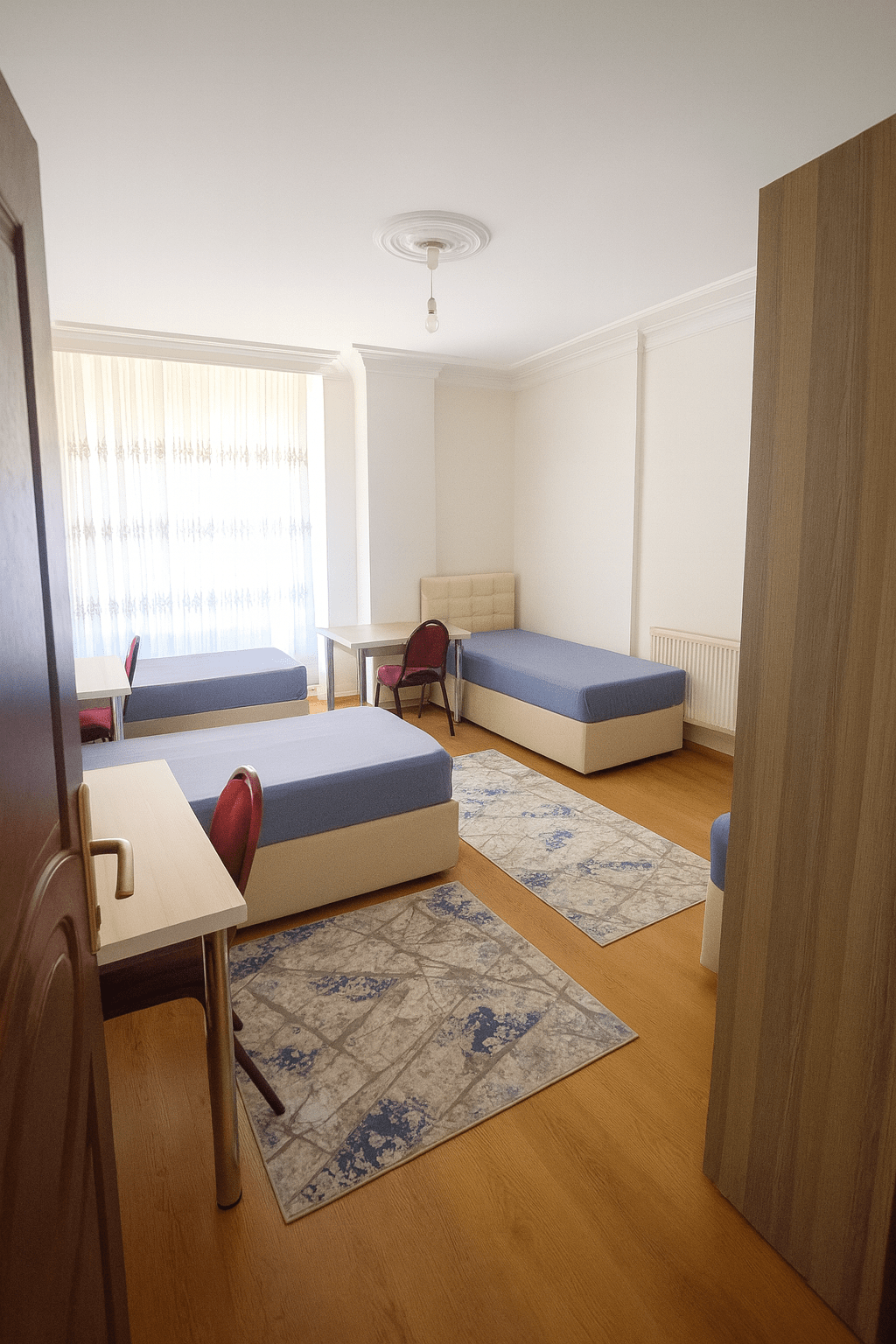 Aslan Erkek Öğrenci Yurdu olarak öğrencilerimizin farklı ihtiyaçlarına uygun oda seçenekleri sunuyoruz. 1, 2, 3 ve 4 kişilik odalarımız; konforlu ortopedik yataklar, çalışma masaları, kitaplıklar ve kişisel dolaplarla donatılmıştır. Ayrıca WC/banyo ve balkon seçenekleriyle öğrencilerimize hem rahat hem de modern bir yaşam alanı sunuyoruz.